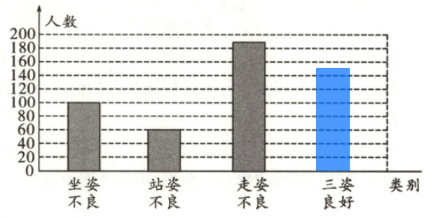 1. 要实现“中国梦”,必须从小事做起。作为一名小学生,要养成良好的日常行为习惯。某小学抽查了若干学生的坐姿、站姿、走姿的情况(每个学生只记录最突出的一种),并将统计结果绘制成如下两幅不完整的统计图。(8分)