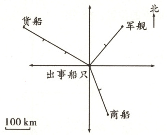 )km;商船的位置在出事船只(南