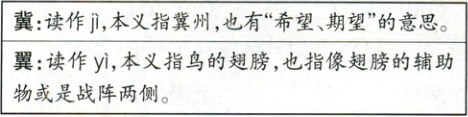 示例:意义和字形区分。“冀”作为河北简称,上部是“北”,与地理相关;作为动词 表示“希望、期望”。“翼”本义是鸟的翅膀,有羽毛覆盖,上部是“羽”,引申为“辅助”“两侧”等意思。