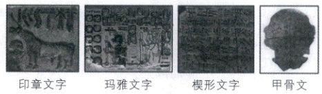 1. [安徽淮北重点四校2025高二期中]下列四幅图是古代不同地区的文字图片,对此理解正确的是 (
