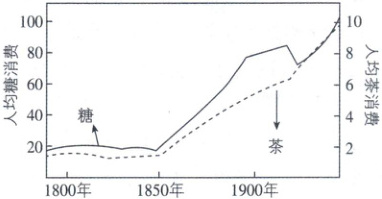 2. [湖南长沙长郡中学2025调研]下图所示为英国1800—1900年人均糖和茶消费的变化情况(单位:磅)。这一变化反映了 (