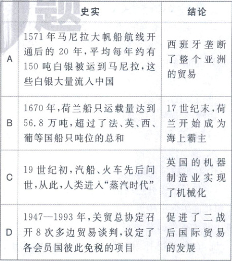 6. 史料实证 下列选项中,史实与结论相符的是(