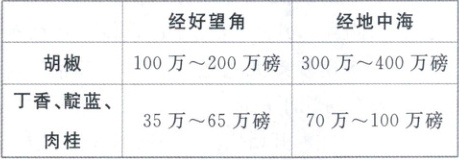 1. 下表是王加丰在《扩张体制与世界市场的开辟》中列出的1600年运入欧洲部分商品的统计表。对此表解读正确的是 (