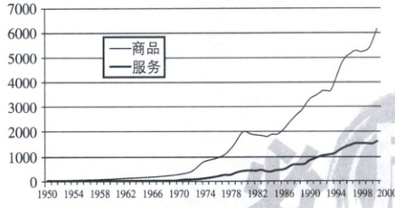 15. 下图是1950—2000年世界贸易发展示意图(单位:10亿美元)。以下理解正确的是 (
