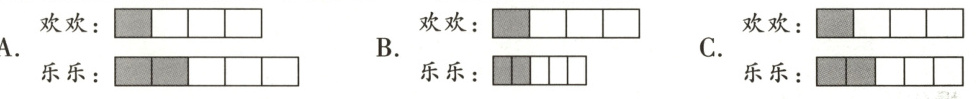 7. 欢欢和乐乐买了一本同样的书。欢欢花了自己钱数的$\frac{1}{4}$,乐乐花了自己钱数的$\frac{2}{5}$。两人原有的钱谁更多?下面图(