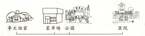 4. 如图,李大伯家到公园有$456$米,到医院有$1000$米,菜市场到医院有$712$米,菜市场到公园有(