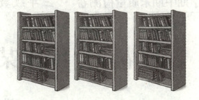 4. 如图,书架每层有25本书,3个书架一共有多少本书? (6分)