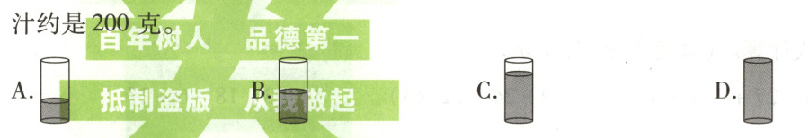 )杯子里的果汁约是200克。