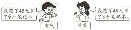 [点拨]淘气45÷9=5(元)一本,笑笑48÷8=6(元)一本,淘气的笔记本便宜一些。
