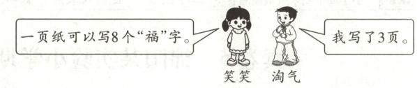 2. 书法组比赛写“福”字,淘气写了多少个“福”字?(3分)