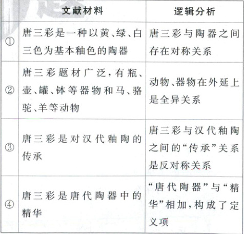 5. [广东汕头 2025 模拟]唐三彩是一种流行于唐代的铅釉陶器。以下对其文献材料的相关逻辑分析恰当的有 (