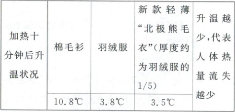 4. [福建福州 2025 段考]某科研团队受到北极熊毛发结构的启发研制出一种新型纤维,该纤维与传统面料保温实验数据如下。对此,下列选项认识正确的是(