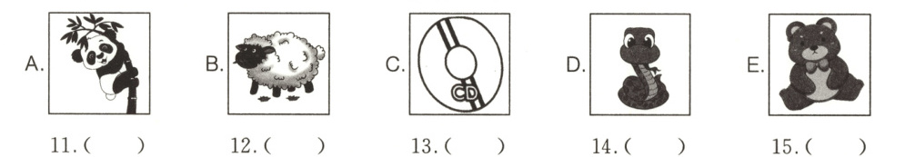 Ⅲ.听录音,按你所听到的顺序选择相应的图片。(10分)