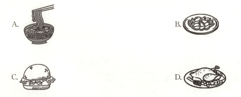 )21. Which picture isn’t Wang Peng’s favourite food?(