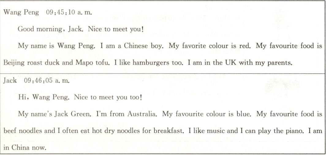 )25. Wang Peng and Jack are chatting online( 在线聊天 ) C