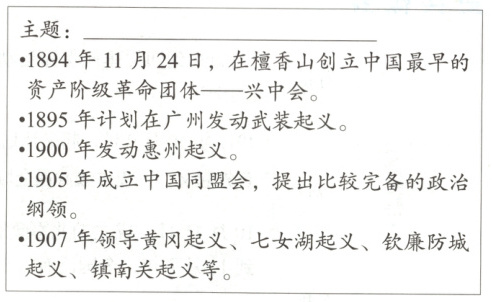 (1)依据材料一,归纳孙中山早期革命活动的主要内容并拟定一个主题。