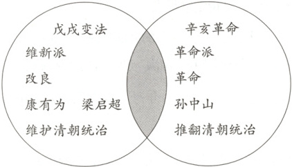 6. [跨学科 - 数学·2025河大附中期中]维恩图是用于显示元素集合重叠区域的图示,可以很好地用其比较历史事件。如下图所示,重叠部分是两个历史事件的共同点,应填写(