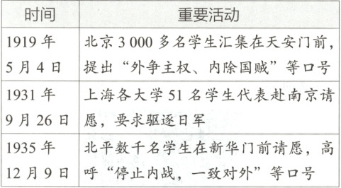3. [2024河南]下表列举了我国近代青年学生的一些重要活动。据此可知,他们(