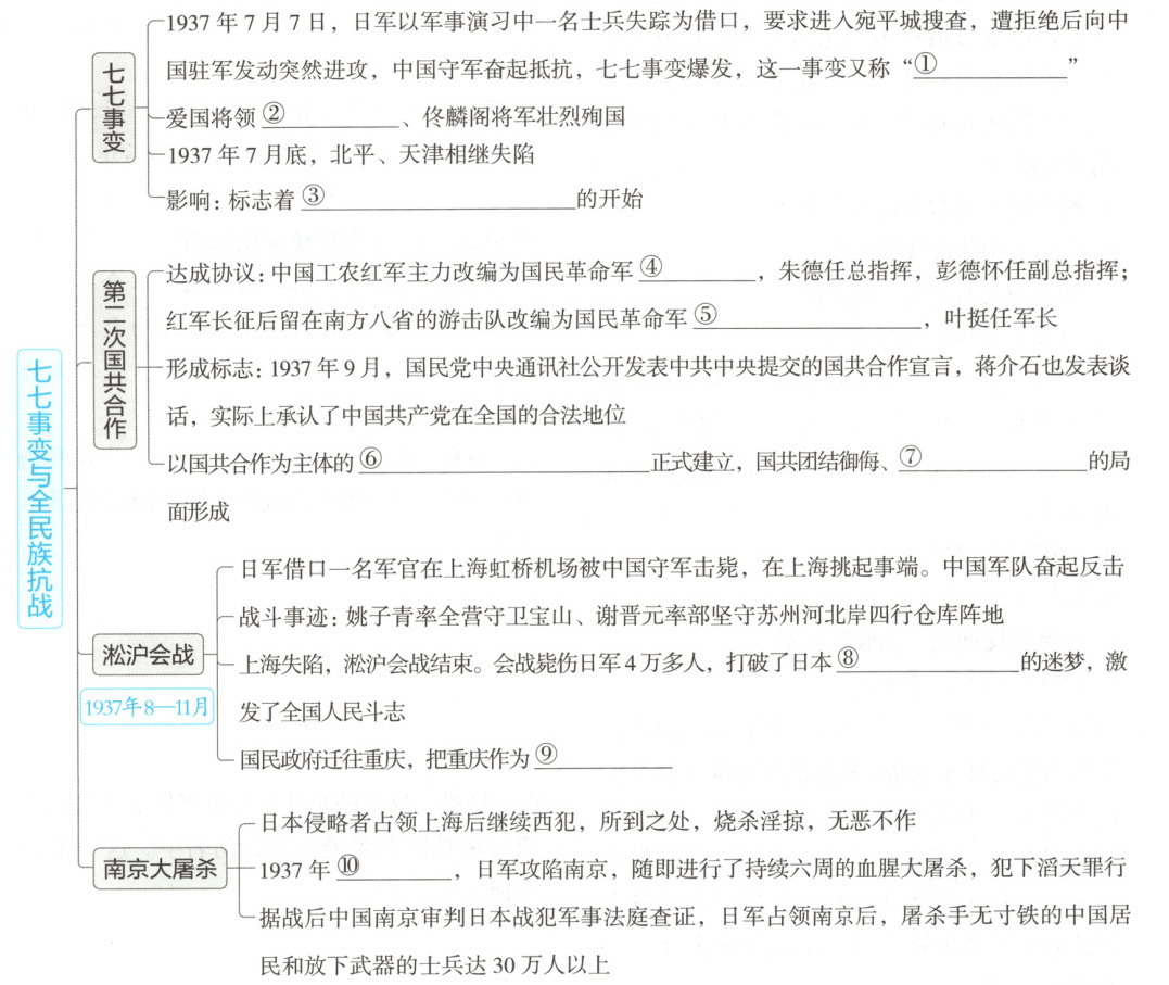 ⑦全民族抗战 ⑧三个月灭亡中国 ⑨战时陪都