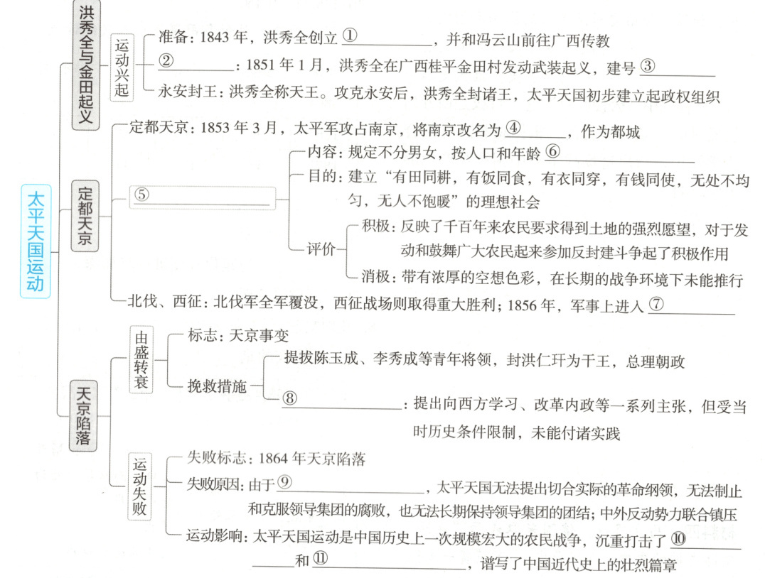 ⑧《资政新篇》 ⑨农民阶级的局限性 ⑩清朝的统治