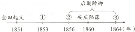 1. [时空观念·2025山西运城期末] 下列年代尺反映的是太平天国运动发展过程中的大事,其中②③处应该是(