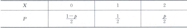 4. D 由分布列可得$E(X)=0 × \frac{1 - p}{2}+1 × \frac{1}{2}+2 × \frac{p}{2}=\frac{1}{2}+p$,则$D(X)=\frac{1 - p}{2}(\frac{1}{2}+p)^2+\frac{1}{2}(\frac{1}{2}+p - 1)^2+\frac{p}{2}(\frac{1}{2}+p - 2)^2=-p^2 + p + \frac{1}{4}=-(p - \frac{1}{2})^2+\frac{1}{2}$。因为$0 < p < 1$,所以$D(X)$先增后减.