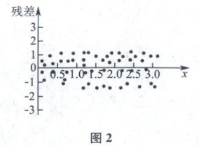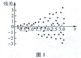 9. AD 对于模型①对应的散点,可以看出残差大致绕着0值分布,没有明显的趋势或系统偏差,因此随机误差满足$E(e_1)=0$的假设,但是方差$\sigma_1^2$随着$x$的变化而变化,不满足$D(e_1)=\sigma_1^2$的假设;对于模型②对应的散点,均匀分布在水 带状区域内,随机误差满足$E(e_2)=0$的假设,方差$\sigma_2^2$不随$x$的变化而变化,满足$D(e_2)=\sigma_2^2$的假设.