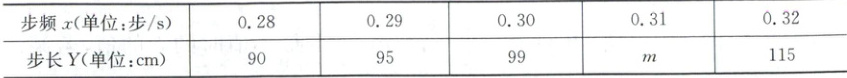 (1)若步频和步长近似为线性相关关系,当$m = 101$时,$\sum_{i = 1}^{5}x_{i}^{2}=0.451$,$\sum_{i = 1}^{5}x_{i}y_{i}=$