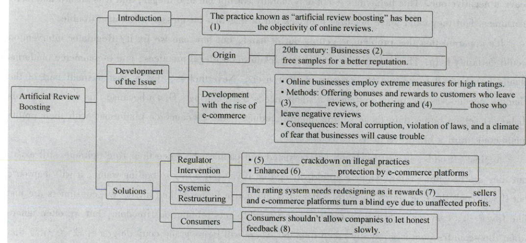 [湖南长沙实验中学期中]There’s a popular saying that if only one voice is allowed to exist, then that one voice must be a lie. This quote couldn’t be more relevant now, as many businesses and platforms are using shady practices to silence negative feedback and ensure only those voices benefiting them remain. This practice is so-called “artificial review boosting”, and has been influencing objectivity in reviews ever since.