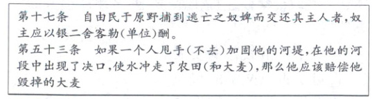 3 B 在条例中,奴主以银酬谢捕获逃亡奴婢并交还自己的人,这是对奴婢这一私有财产的保护;个人未加固河堤致使大麦受损则应赔偿,这体现了对农田上农作物等私有财产的保护,故选B项。材料中的法典内容不局限于奴隶主群体,A项错误。材料所述相对于奴婢来讲,没有体现出公平正义,C项错误。仅材料中的两条具体法规,不足以得出法律体系完备,D项错误。