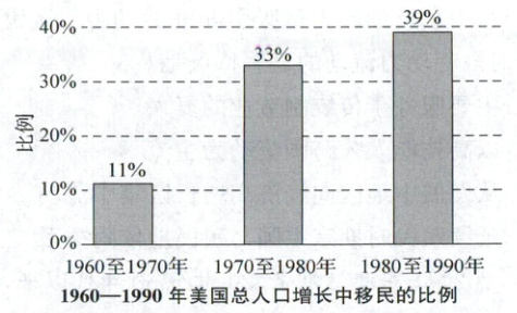 5 D 移民在美国总人口中占比不断提升,意味着大量移民进入美国,这会使得美国的民族构成、文化、习俗等更加多样,故选 D 项。印第安文化虽会受到冲击,但移民的影响更侧重于多种文化的传入与交融,A 项错误。材料未涉及人道主义救助问题,B 项错误。美国社会中族群之间存在种族歧视等问题,并没有实现完全平等,C 项错误。
