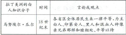 7. [2025山东济南期中]下表所示为18世纪拉丁美洲白人知识分子的言论或观点。这可用于说明这一时期的拉丁美洲 (