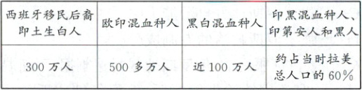 2. [2024 河南青桐鸣联考]下表为 19 世纪初拉丁美洲人口构成情况的统计。这可以用来佐证当时拉美地区(