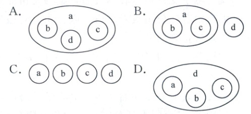 4. B 人身权包括人格权和身份权(d),人格权(a)包括姓名权(b)、肖像权(c)、名誉权、荣誉权等,人格权(a)与姓名权(b)、肖像权(c)是种属关系,身份权(d)与人格权(a)是全异关系,B正确,A、C、D排除。