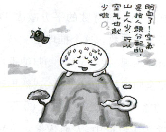 11. 观察下面漫画中的推理(明白了!空气是按人头分配的,山上人少,所以,空气也就少啦!)。对此,下列说法正确的是(