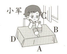 7. 下面三幅图分别是小军坐在桌子的哪个位置观察到的? 填一填。