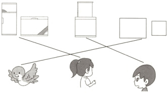 2. 下面三幅图分别是谁看到的? 连一连。(6分)