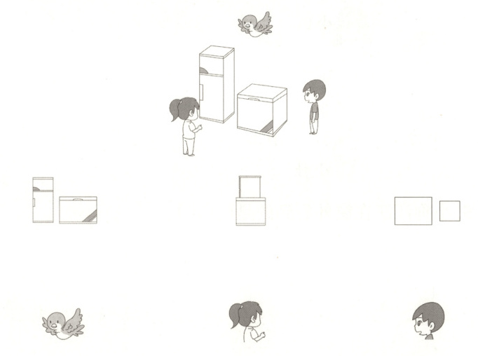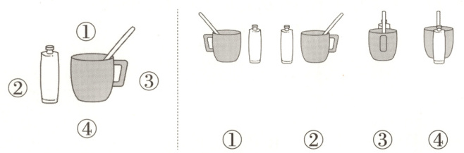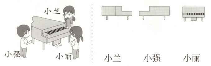 3. 分别从前后左右观察,看到的各是哪个画面? 连一连。(8分)