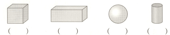 4. 天天说:“我看到立体图形的一个面是正方形。”在可能的立体图形下面画“√”。(2分)