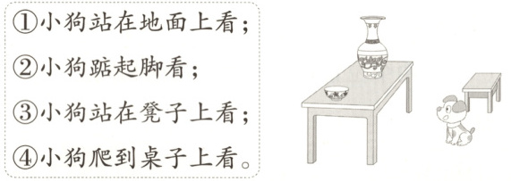 请你按小狗四次观察的顺序,在四个画面的括号里标出序号。(8分)