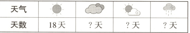 (2)晴天天数比多云天数的5倍少2天,多云有多少天?(6分)