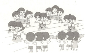1. 啦啦队的人数是参加比赛人数的几倍?(5分)