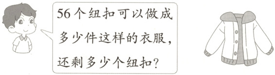 答:56个纽扣可以做成18件这样的衣服,还剩2个纽扣。