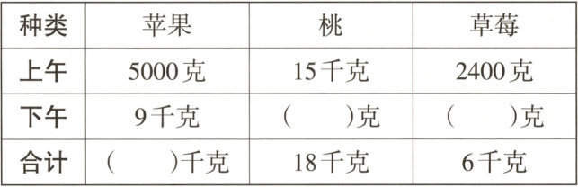 4. 某水果店卖出一些水果,请你帮忙算一算,填写下表。