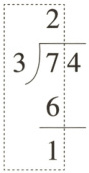 4. 把74个苹果平均装入3个箱子,每个箱子装几个苹果?右边的竖式虚线框内的计算过程表示(
