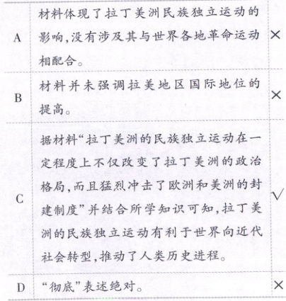 拉丁美洲人民经过艰苦斗争,于19世纪20年代基本获得独立。如果从世界全局的角度来看,拉丁美洲的民族独立运动在一定程度上不仅改变了拉丁美洲的政治格局,而且猛烈冲击了欧洲和美洲的封建制度。这表明拉丁美洲的民族独立运动( )