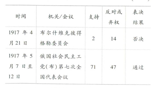 8 知识点2(2025河北高中检测)1917年4月,列宁发表著名的《四月提纲》,提出了把资产阶级民主革命过渡到社会主义革命的策略。下表是布尔什维克党重要机关及代表会议对该提纲的表决结果。据此可知(
