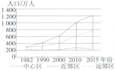 3.C 图示中心区人口数量呈小幅度波动下降趋势,但整体稳定在 200 万人左右,没有出现人口大量外迁的现象,A、B 错误;图示郊区的人口数量呈上升趋势,尤其是近郊区人口明显上升,人口数量增长最多,C 正确、D 错误。