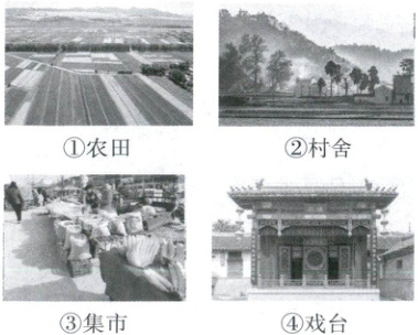 1.D 乡村公共空间主要是为满足居民的社会需求,具有一定的开放性和公共性。农田主要是用于农业生产活动的空间,①错误;村舍是村民居住的私人空间,具有很强的私密性,不属于公共空间,②错误;集市是乡村中定期或不定期进行商品交易的场所,村民们可以在这里买卖物品、交流信息等,是乡村公共活动空间,③正确;戏台是乡村举办戏曲表演、文艺活动等集体活动的场所,可供全体村民观赏和参与,属于乡村公共空间,④正确。故选D。