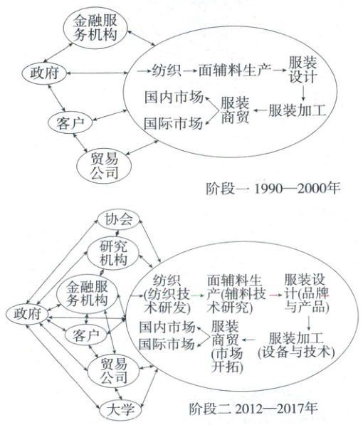 2. 与阶段一相比,阶段二该镇牛仔产业集群发展的主要特点有(